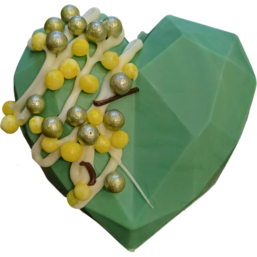 Зарадвайте близките роднини и приятели с ръчно изработено диамантено сърце със зелен цвят от бял шоколад.