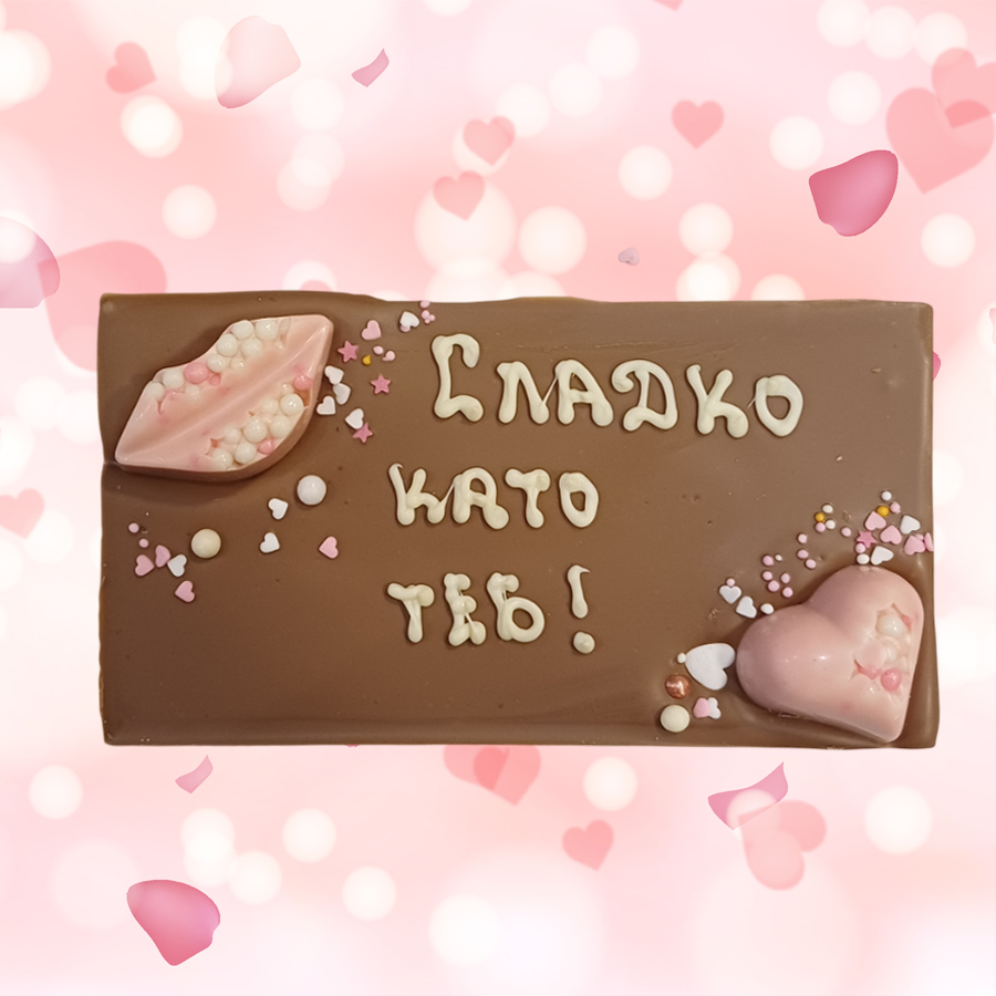 Млечен шоколад картичка 120 г, с надпис “Сладко като теб”